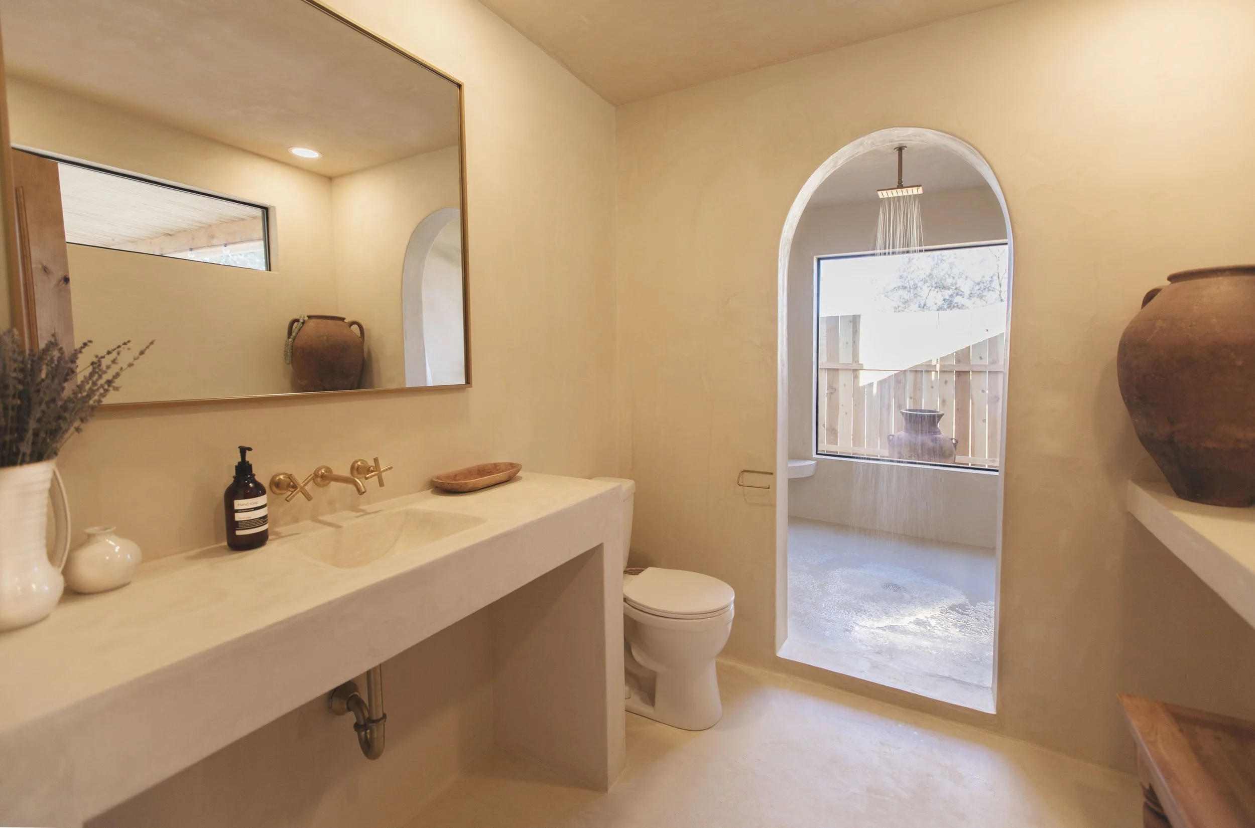 The Nabu Villa is a remarkably designed, bright, airy and expansive state of the art property - boasting 2400 square feet of private estate on 2 acres of land. With oversized windows and doors throughout, our goal is bringing the beautiful outside of the desert, in. Inspired by desert nature - everything in the house is custom, handmade, one of a kind pieces... even the bathroom vanities and sinks we molded and made ourselves. Our neutral plasters, clays, pottery and handmade furniture - all whisk you away to another world in an ideal setting to disconnect and recharge.
